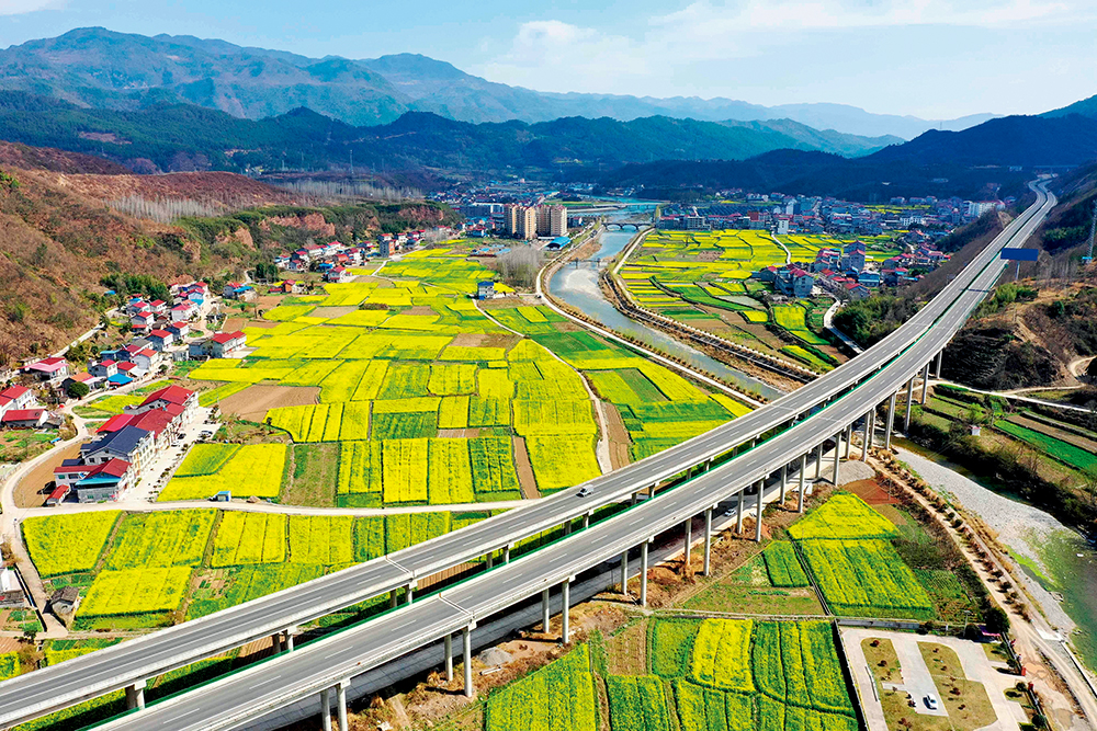 3月4日,湖北省保康县,高速公路两边的油菜花竞相绽放 杨韬摄/本刊