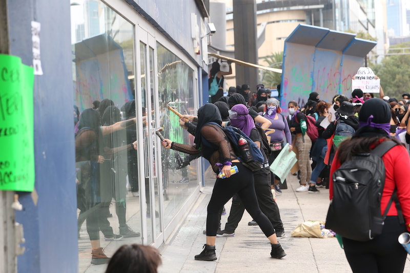 在墨西哥城的宪法广场,大量女性示威者通过上街抗议、涂鸦,甚至放火焚烧物品等方式,希望引起政府和社会各界意识到墨西哥女性的处境,正视墨西哥日益严峻的性别暴力问题。