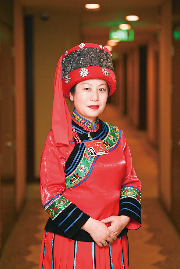 ↑全国人大代表、重庆酉阳土家族苗族自治县桃花源街道天山堡村委会主任冉慧。