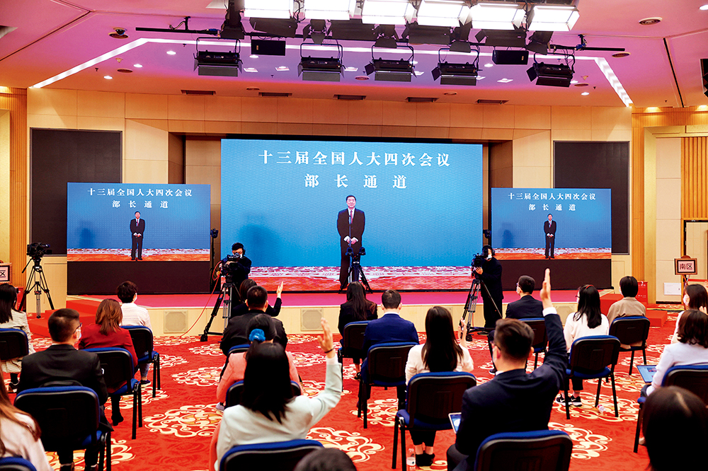 3月5日,十三届全国人大四次会议举行首场“部长通道”采访活动。记者在分会场通过网络视频方式采访国家发展和改革委员会主任何立峰 曹灿摄/本刊