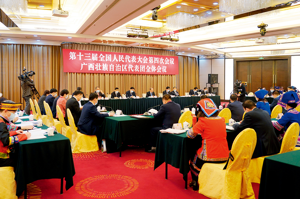 3月5日,十三届全国人大四次会议广西代表团举行全体会议 温竞华摄/本刊