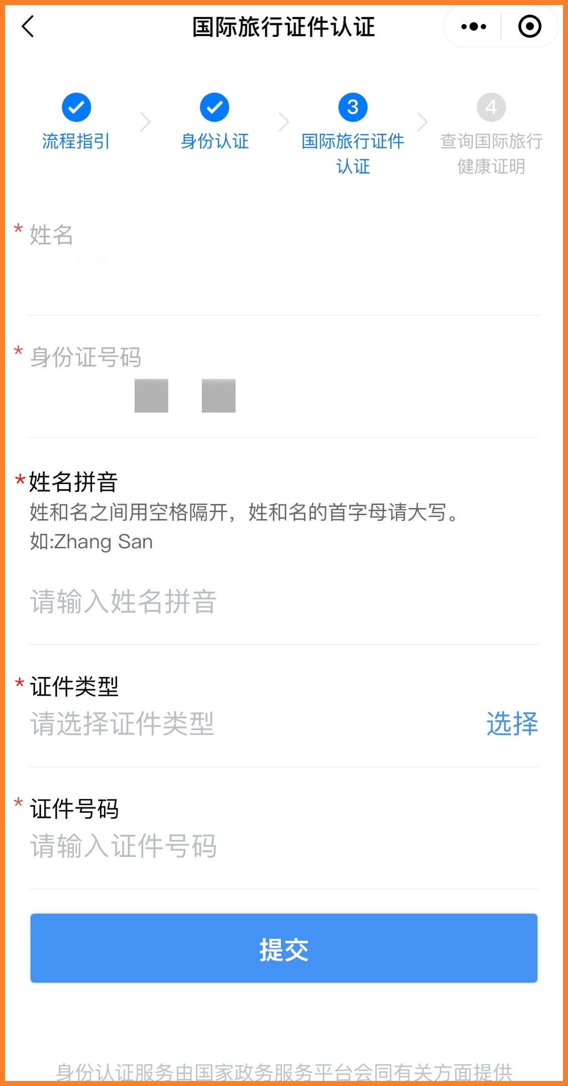 step3:首次登录,需根据程序提示进行个人身份认证及护照等旅行证件认证。