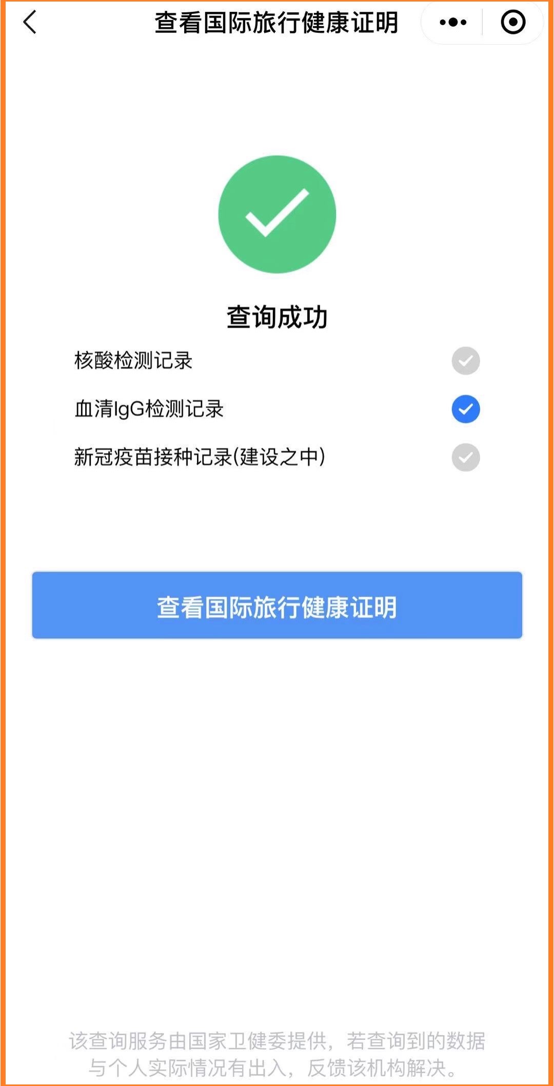 step4:小程序将支持查询核酸检测记录、血清IgG检测记录、新冠疫苗接种记录。(目前疫苗接种相关数据正在建设中)