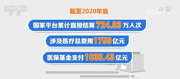 截至2020年底,住院费用跨省直接结算定点医疗机构数量为4.44万家,比2019年底增加1.68万家,增长60.87%。国家平台累计直接结算724.83万人次,涉及医疗总费用1759亿元,医保基金支付1038.43亿元。