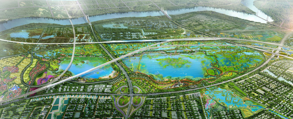 中法两国可持续发展示范项目——中法生态示范城,如今是武汉对外开放的一块“金字招牌”。2014年3月,在中法两国元首的共同见证下,中法生态示范城项目签约落户武汉市蔡甸区,规划面积约39平方公里,截至2021年1月,累计完成固定资产投资380亿元,用于基础设施、生态管理和产业项目。