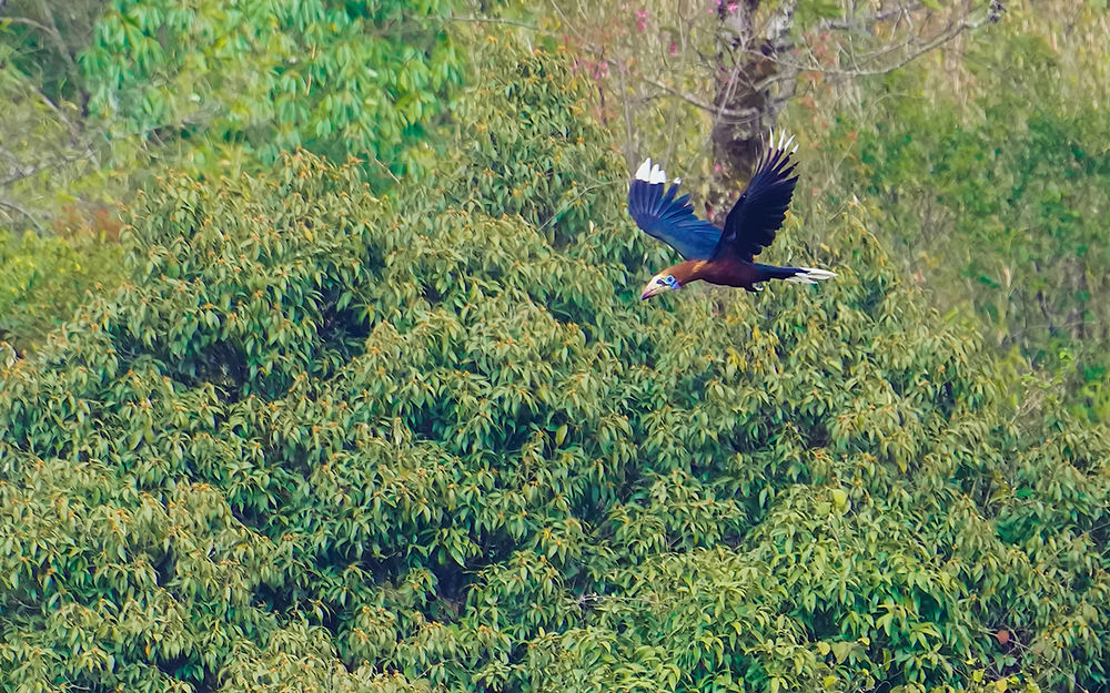 3月7日,几名生态摄影师在云南省德宏傣族景颇族自治州盈江县境内海拔2000多米的山林里,拍摄到3只棕颈犀鸟影像。根据观测和影像判断,3只棕颈犀鸟为2只雄鸟和1只雌鸟。