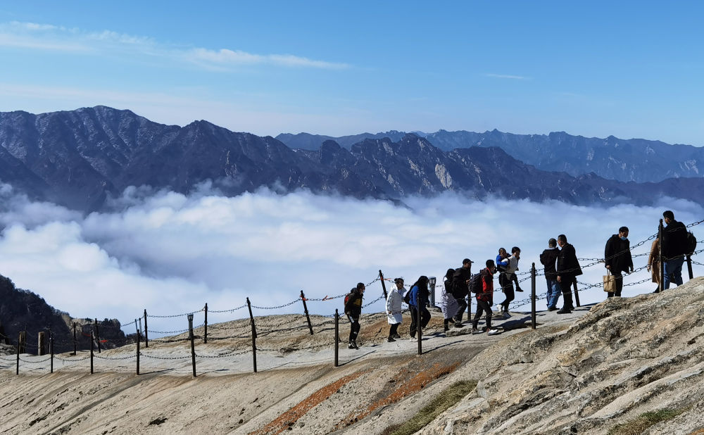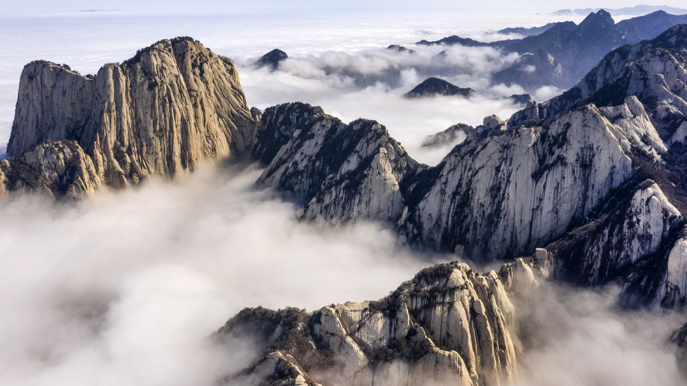 当日,西岳华山雨后初晴,山峦间云雾缭绕,美不胜收。