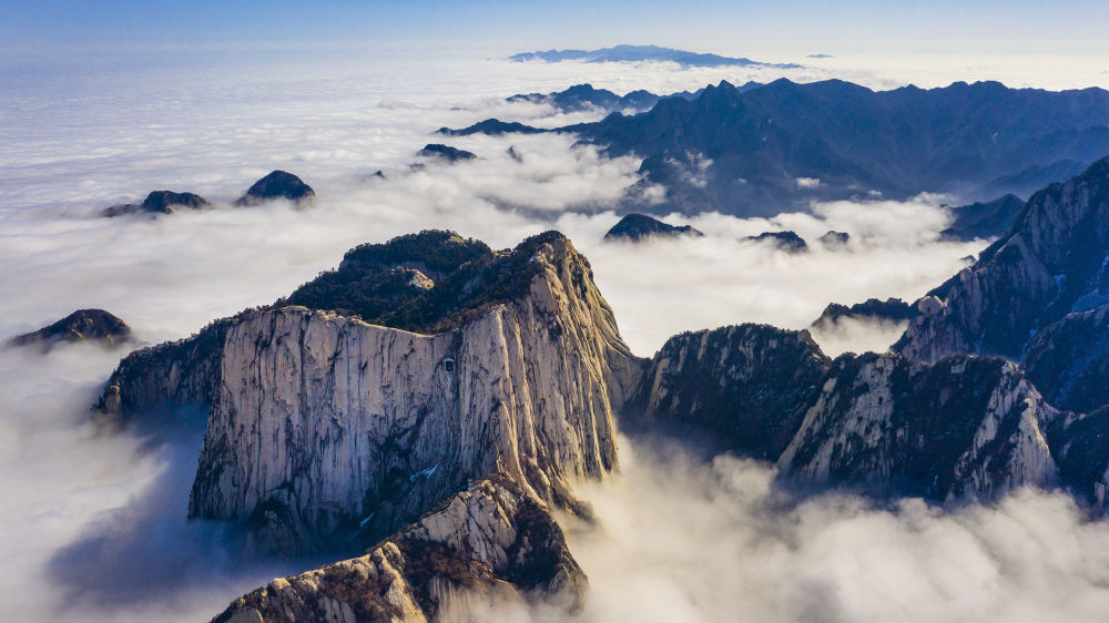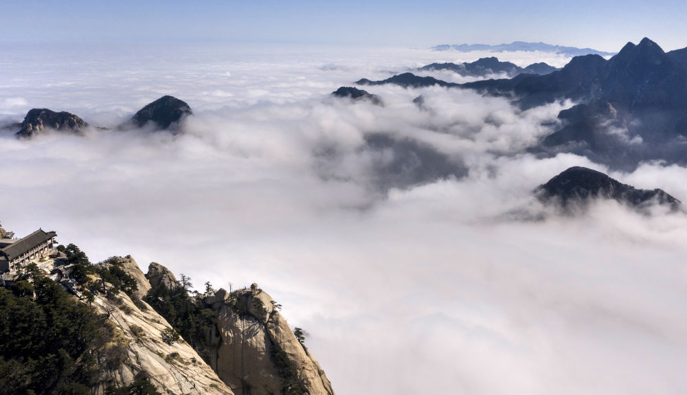 ↑ 3月9日拍摄的华山云海景观(无人机照片)。