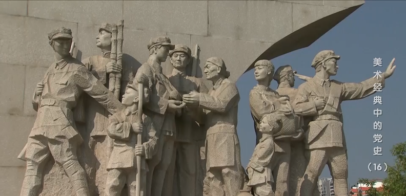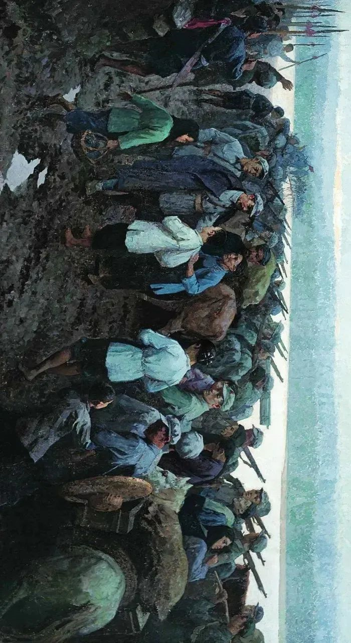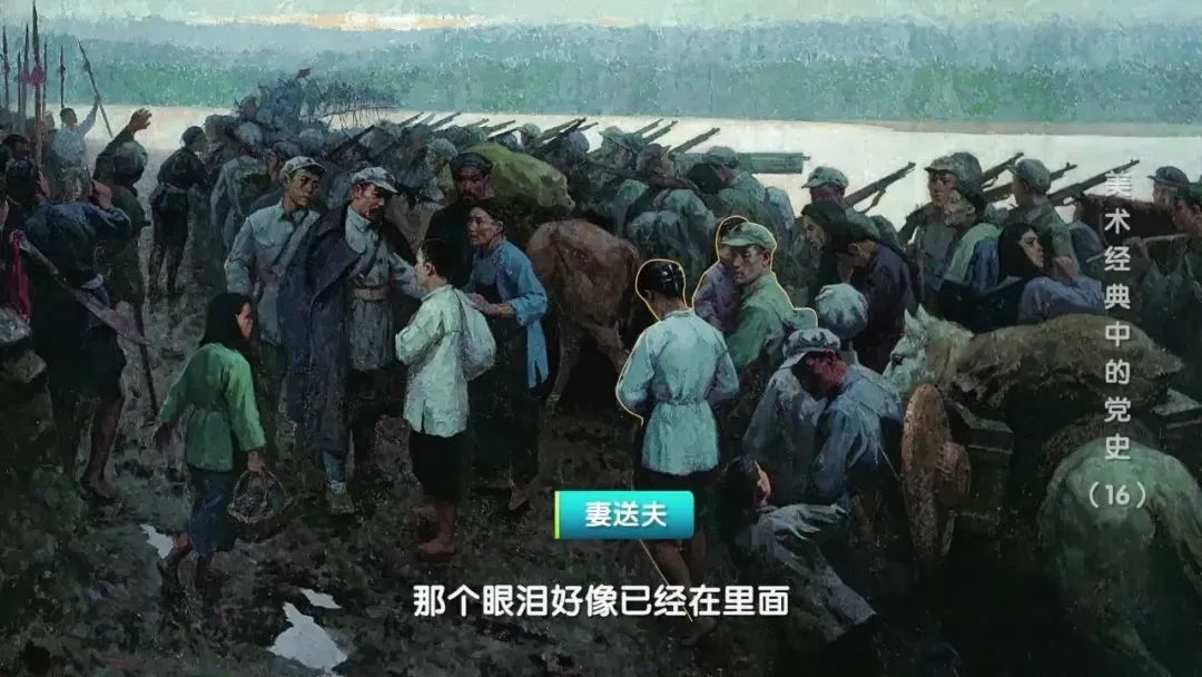 一位母亲拍着儿子的肩膀,仿佛在向红军指挥员说:“把孩子交给你吧,他也一起去参军。”而红军指挥员看着孩子,像在回应:“你年龄还小,我们还会回来的。”这一组人物,表达革命的火种还留在于都。