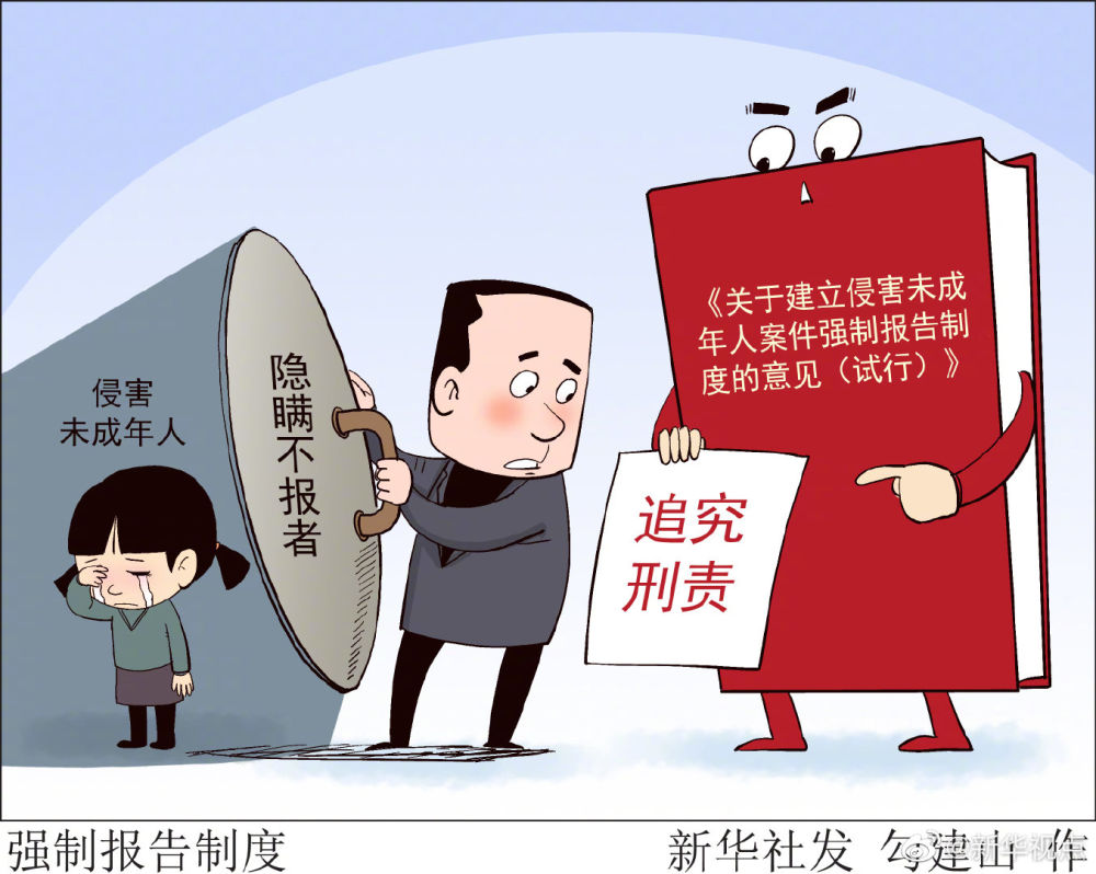 【发现未成年人遭受侵害不报告可追刑责】发现未成年人遭受不法侵害,有关单位和个人却“捂盖子”“和稀泥”?今年的最高检工作报告通报了相关案例,侵害未成年人隐瞒不报者被追究刑责,涉嫌违纪违法人员受到处罚。去年5月,最高检等9部门共同建立侵害未成年人案件强制报告制度,规定9类未成年人遭受不法侵害情形,有关单位和个人须立即报案。据最高检统计,截至去年9月,各地通过强制报告立案并审查起诉的案件近500件。(记者白阳、陈菲)