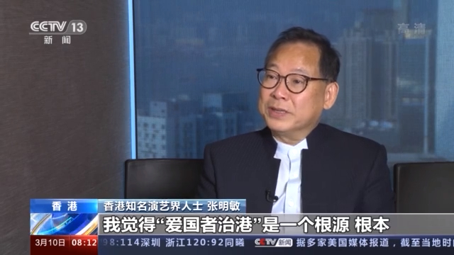 香港知名演艺界人士 张明敏:我觉得“爱国者治港”是一个根源、根本,如果你不爱国,那怎么能够把特区来管好、治好。我觉得这个是一个不容怀疑,也不容置疑的。那么这个爱国者怎么样去把这个香港管好呢?香港有三个选举,首先是特区政府的选举,第二就是地方的选举,第三就是立法会的选举,这三个选举必须要选好我们爱国人士。