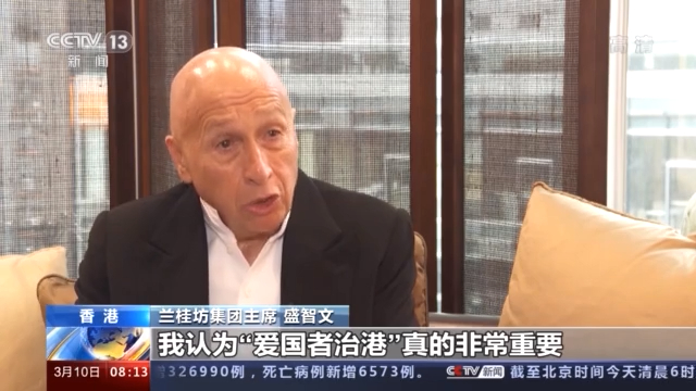 兰桂坊集团主席 盛智文:我认为“爱国者治港”真的非常重要,爱国者应该出现在立法机构和政府里。世界上大多数国家都由爱国者治理,因此我认为这将有助于真正为香港未来指明方向,爱国主义对每个国家都很重要。因为香港是中国的一部分,我们不必要担心外部势力的干涉,我们不用担心任何事,因为由立法机构和政府里的爱国者治港。我们会感觉放心,人们的生活会越来越好。