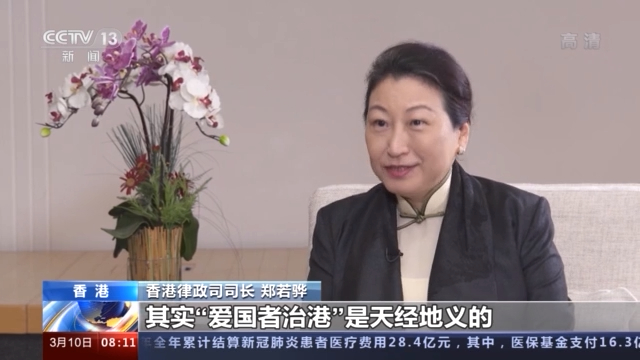 香港律政司司长 郑若骅:其实“爱国者治港”是天经地义的,每一个中国公民都应该是爱国的。但是如果你是当官的,或者是你有治理权的,这样的话其实对爱国的要求就应该更高。法律依据是非常清晰的,全世界都是一样。制定它的政治架构,这一个都是在中央的权力里面。现在中央主导完善我们的选举制度,就是让我们在政治的架构方面可以更完善,可以发挥他们的真正的效能,就是为人民、为香港、为国家服务。而且服务的时候都是有效客观的,这样的话我们“一国两制”才可以行稳致远,我们香港的老百姓的福祉才可以有很好的保障。