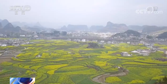 央视网消息:随着气温回升,贵州省六盘水市六枝特区木岗镇的万亩油菜花陆续盛开。一望无际的油菜花在田野上铺展开来,吸引了不少游客。今年木岗镇油菜花种植面积为15000亩,花期较去年提前一个月,因地势分布差异,部分油菜花将开放到4月中旬。