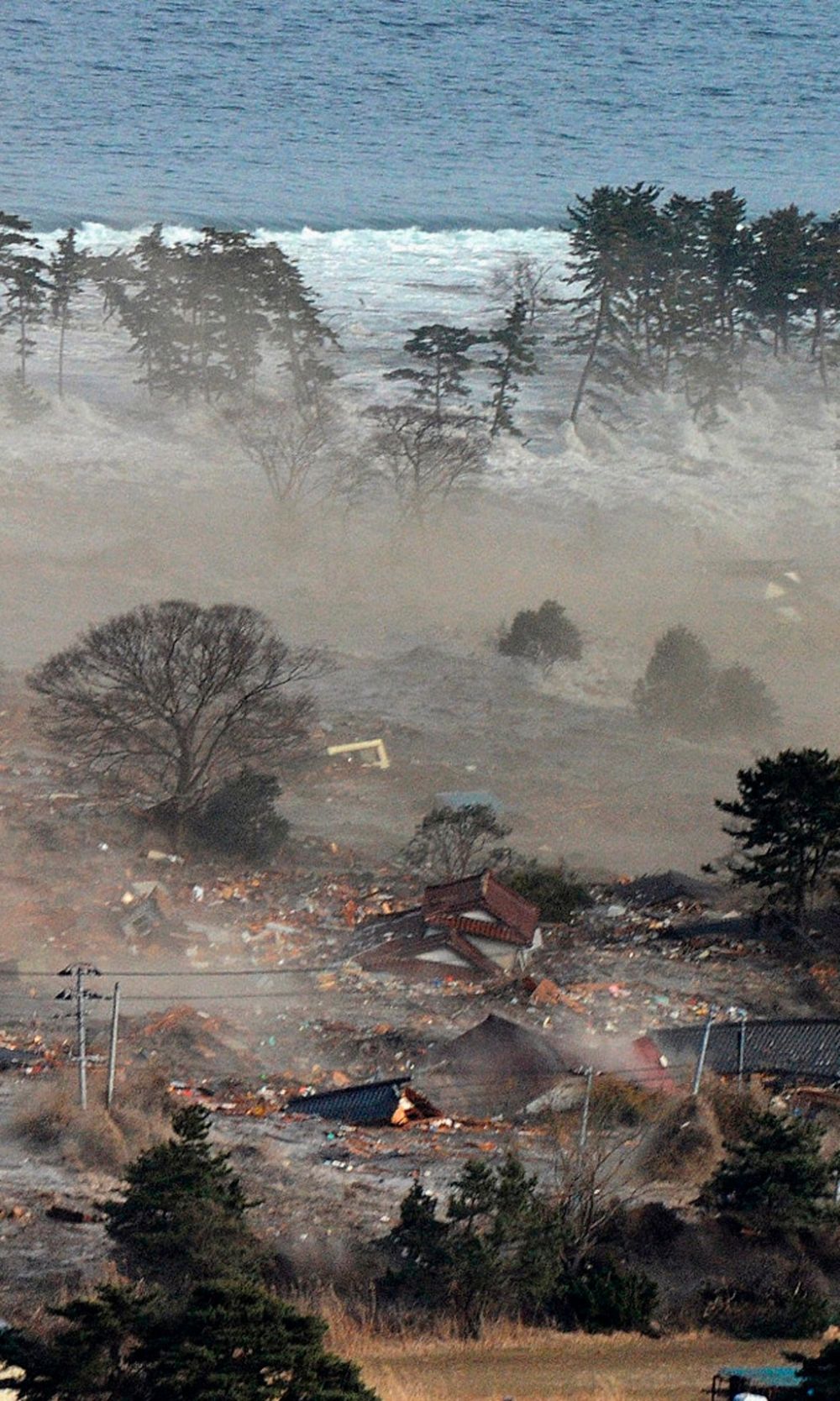 2011年3月11日,日本宫城县名取市的房屋被海啸损毁。(新华社/路透)