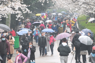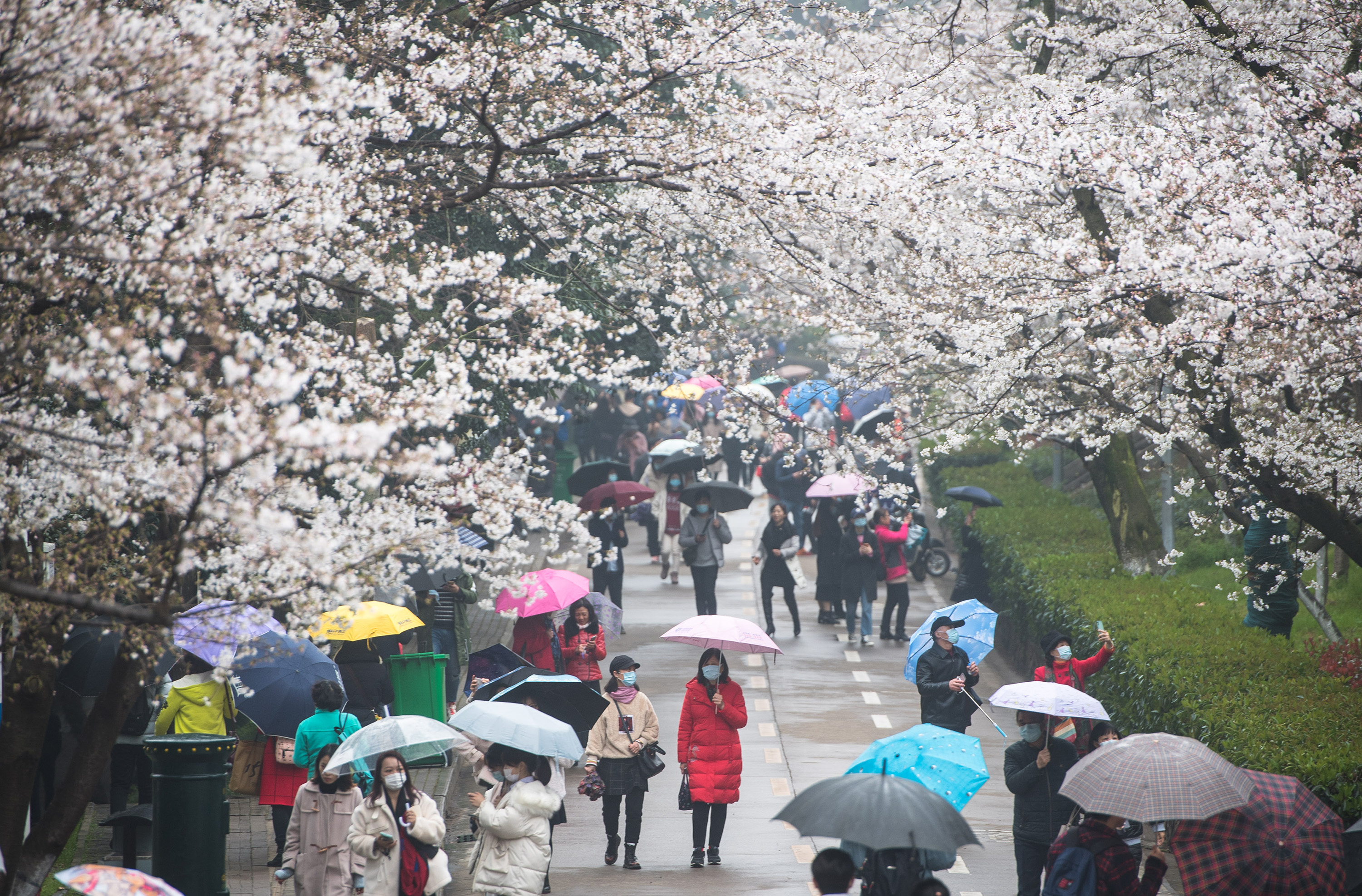 今年的樱花盛开季,武汉大学对社会公众延续往年“实名限额、网络预约、双重核验”赏樱政策,工作日每天预约限额1万人,周末每天预约限额1.5万人。