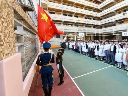 △2019年9月23日,在国庆70周年来临之际,驻港部队仪仗队官兵就来到香港培侨中学为学生们上了一堂庄严的升国旗课,加深他们对国家的了解。