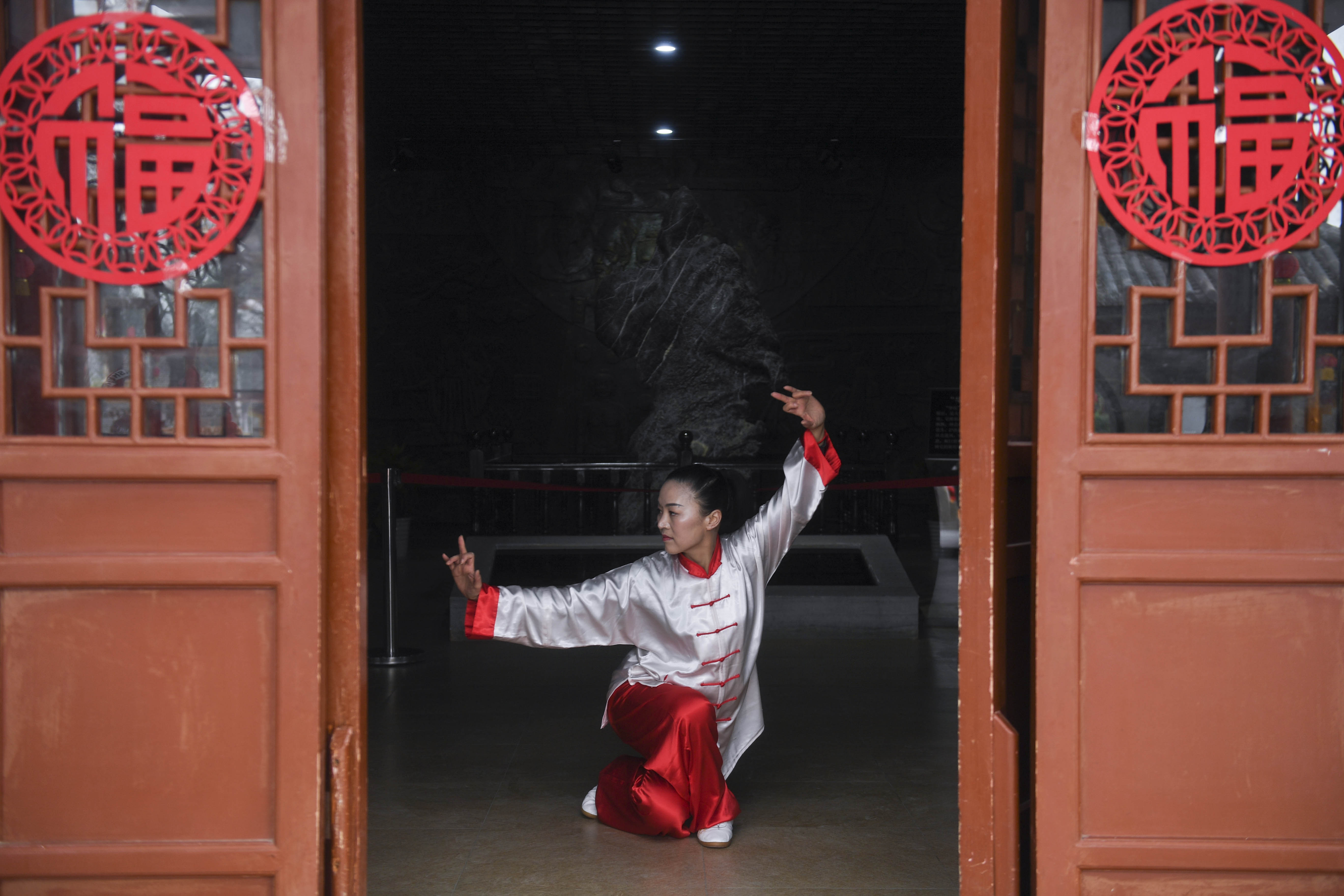 资料图:全国人大代表陈静在安徽亳州华祖庵内展示五禽戏。新华社记者张端摄