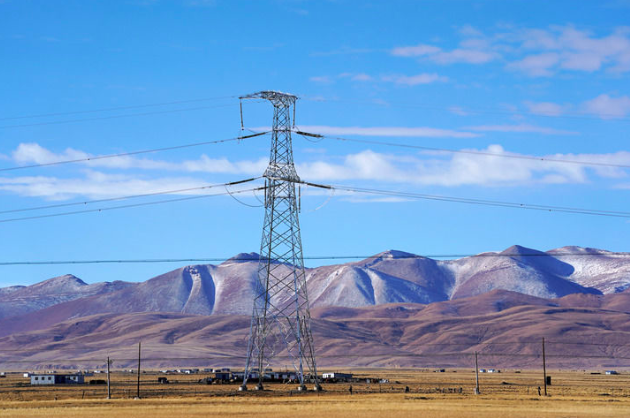 △2020年11月29日,西藏阿里地区普兰县,西藏阿里与藏中电网联网工程输电铁塔。