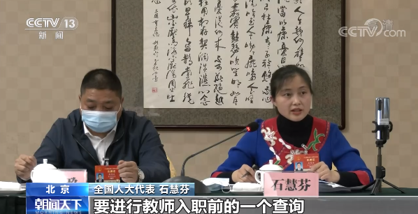 全国人大代表 石慧芬:建议支持社会力量规范办园,加上一个规范二字。社会力量办园可以有效缓解幼儿入园难的压力,但是一定要规范办园,在消防安全,特别是教师素质这一块,要进行教师入职前的一个查询,还有在教学内容上要达到公办幼儿园的这些标准。