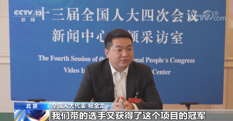 全国人大代表 杨金龙:因为我们以前有个思维,觉得国外的技能可能要比我们好,后来拿到冠军,我们整个团队还有我们专家组长都哭了,当时他说没想到我们能够拿到冠军。特别是在2017年,我们带的选手又获得了这个项目的冠军,我们就更加有信心了。