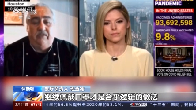 餐厅负责人 理查德:得克萨斯州的新冠肺炎死亡率依旧很高,住院病例也很多,在这种情况下为什么要改变此前的防疫措施呢?继续佩戴口罩才是合乎逻辑的做法。