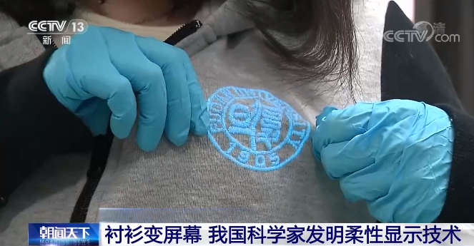 这是一件普通的校服,通电之后,校徽图案就可以被点亮。秘诀就是这些最细的直径不到半毫米的线,可以织进不同衣服,并形成一个特殊的织物显示系统,让衬衫变身电子屏。这种像衣服一样超级柔软的显示技术,是复旦大学彭慧胜、陈培宁团队深耕10余年的成果。