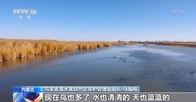 乌梁素海水禽自然区保护管理站站长 马海明:乌梁素海的生态环境是越来越好了,现在鸟也多了,水也清清的,天也蓝蓝的。