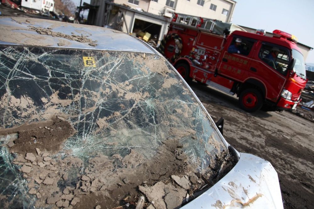 这是2011年3月13日在日本东北地区的岩手县宫古市拍摄的在地震中毁坏的汽车。(新华社记者张金加摄)