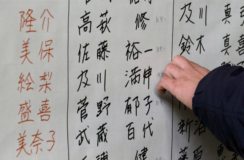 2011年3月13日,在日本岩手县陆前高田市,一名生还者在避难所查看其他生还者姓名。(新华社/路透)