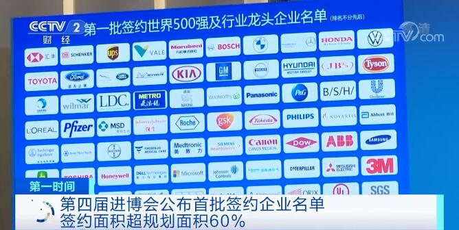 记者 左嘉玉:在会议上我们了解到,第四届进博会的规划展览总面积为36万平方米,目前报名签约的面积已经超过了规划面积的60%以上,同时会议上也公布了160家首批签约企业名单。