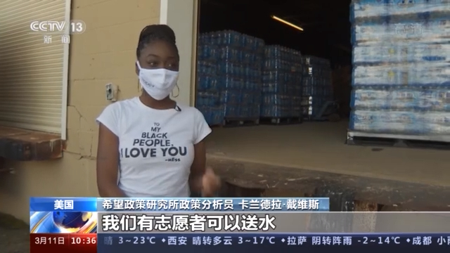 希望政策研究所政策分析员 卡兰德拉·戴维斯:这是我们的一个仓库,我们有可饮用的瓶装水,还有一些生活用水。如果人们愿意的话,可以用来冲厕所或者洗澡,人们白天可以来这里现场取水,但如果他们不能来,我们有志愿者可以送水,我们还在密西西比州的农村地区送水。