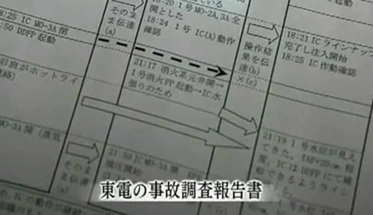 但是根据NHK的调查,一号机组的工作人员由于隔离冷凝器阀门开闭指示灯因断电失去显示,陷入对“隔离冷凝器(IC)阀门是否打开”的困惑。操作员和现场指挥都没有想起此前已经将其阀门关闭这一事实。