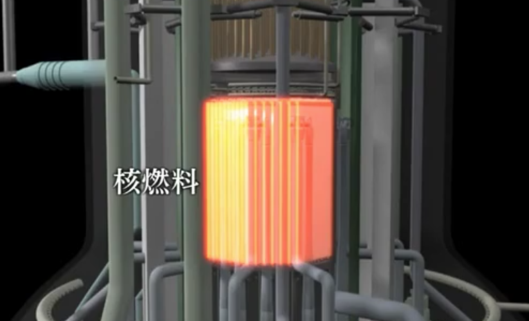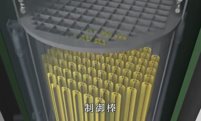 受地震加速度影响,反应堆自动插入控制棒,中断链式反应。(效果图 图片来源:NHK)