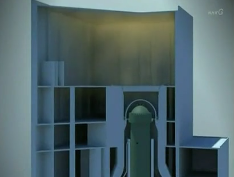 12日零点,压力指示计显示,反应堆压力已经升至0.6MPa。(模型复原图 图片来源:NHK)