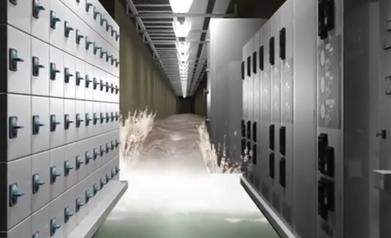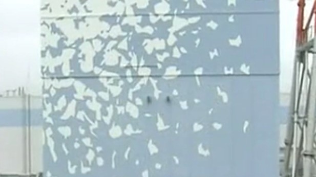海啸导致海水侵入核电站应急供电设施(效果图 图片来源:NHK)