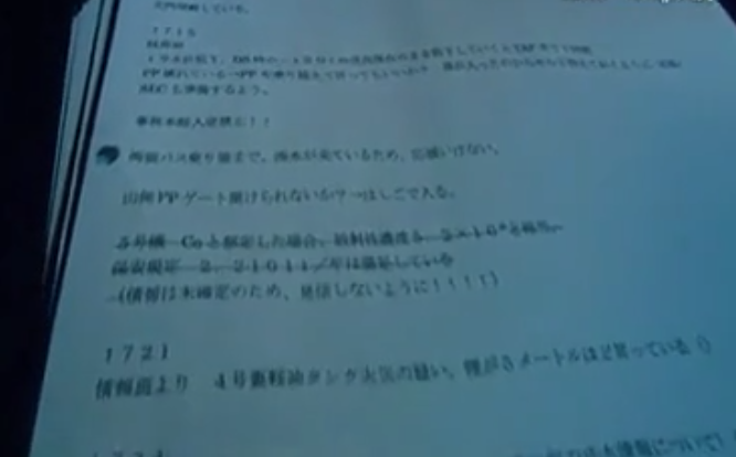 记载了事件发生时,一号机组炉心水位快速下降相关报告的文件。(图片来源:NHK)