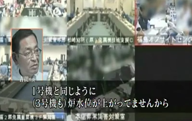 12日,中央指挥室中,福岛核电站负责人吉田昌郎曾谈到一号机组注水困难。(图片来源:NHK)