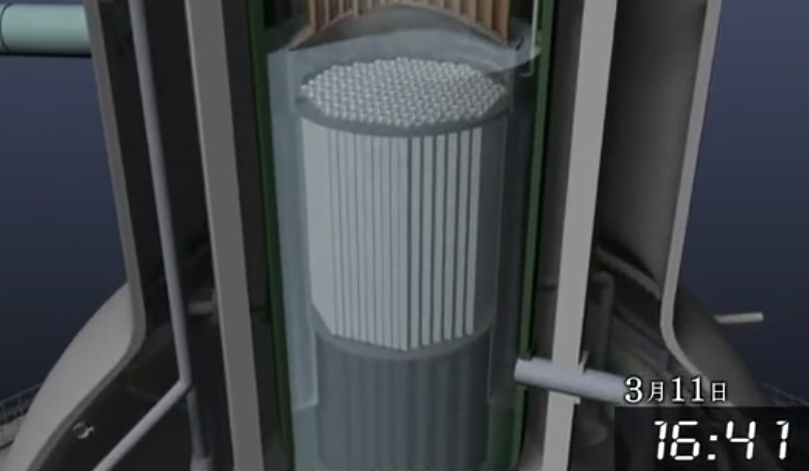 16:41,一号机组反应炉水位降至燃料上方2.5米处。(模拟示意图 图片来源:NHK)