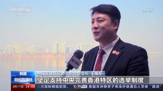 中国在韩侨民协会总会总会长 王海军:首先,旅韩华侨华人和各界爱国人士坚定支持中央完善香港特区的选举制度,坚定支持“爱国者治港”的原则,没有任何一个主权国家会允许不爱国的人加入执政队伍,“两制”的前提必须是“一国”,热爱祖国,捍卫国家主权和领土完整是对每一位施政者最基本的要求。