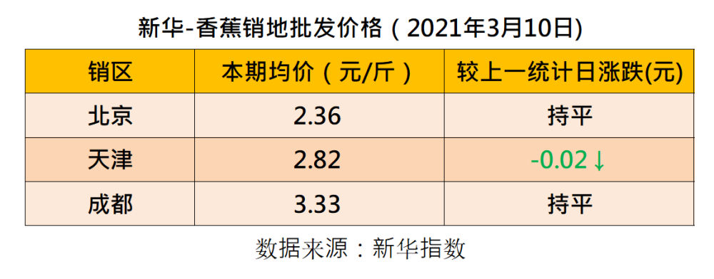 本监测期内(3月4日—3月10日),受前期高价影响,客商多持观望态度,订货积极性欠佳,产区交易较为平淡,蕉价小幅回落;销地批发市场方面,当前产区蕉价依然处于较高位,批发市场供货成本依然较高,销地蕉价整体稳中有涨;进口蕉方面,目前不受寒优质进口蕉需求较大,进口商走货积极,进口香蕉价格稳步上涨;皇帝蕉方面,当前海南产区优质水果供应品类较多,皇帝蕉市场需求缩减,产地蕉价呈下跌走势。