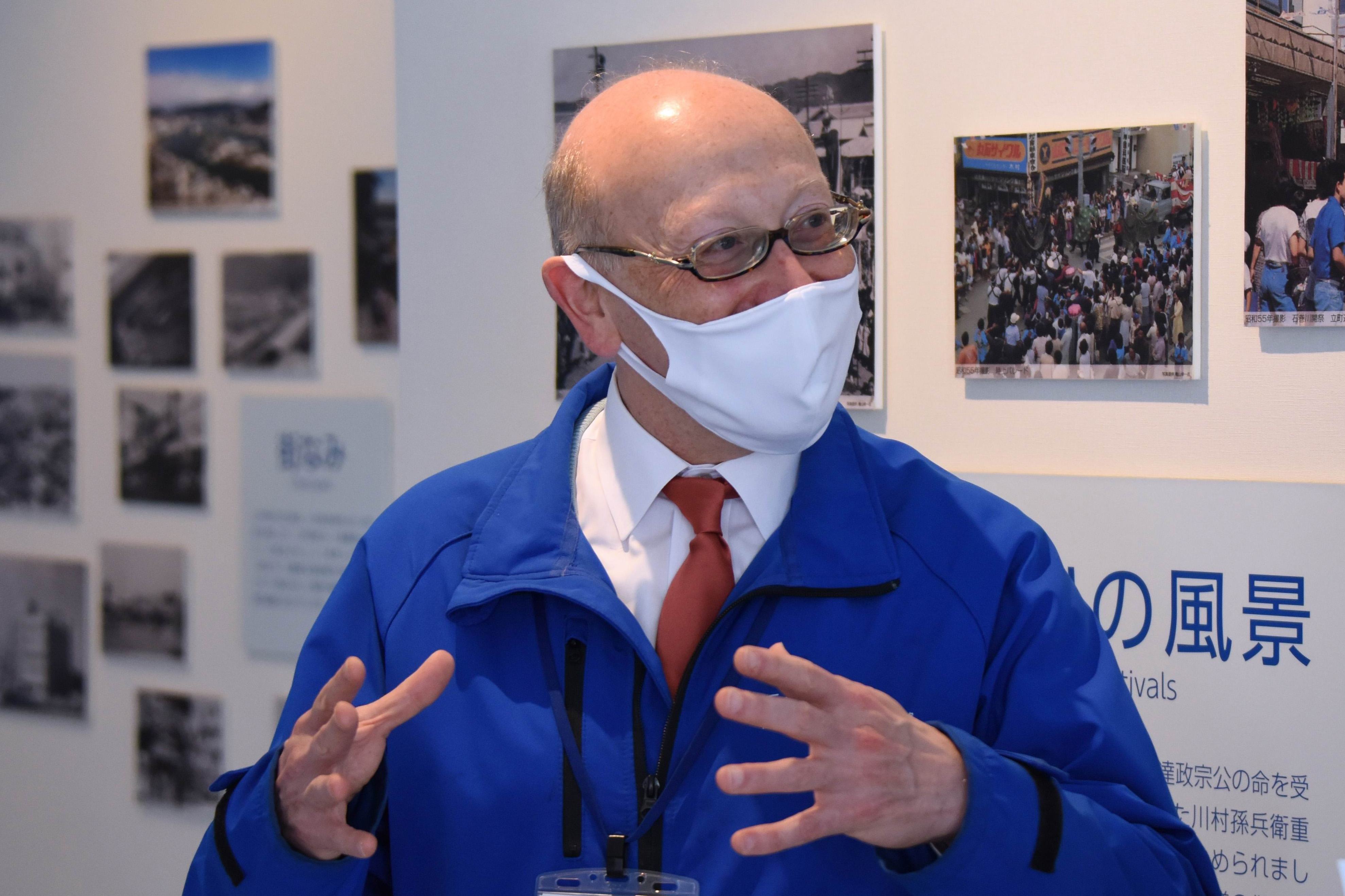 3月10日,在日本石卷市重建信息交流馆,馆长理查德·哈尔伯施塔特接受新华社记者采访。新华社记者冮冶摄