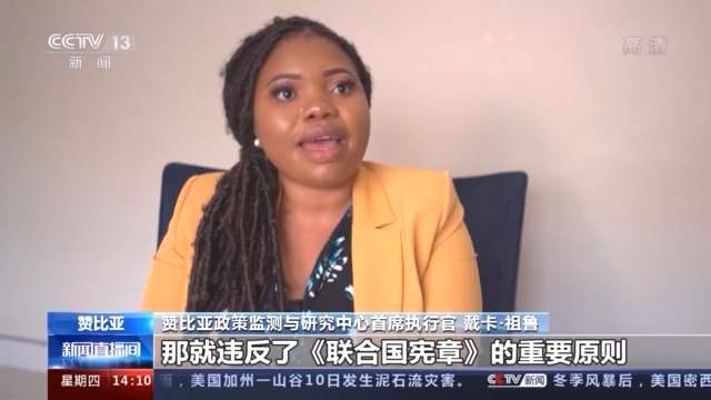 赞比亚政策监测与研究中心首席执行官 戴卡·祖鲁:我们相信在不受他国干涉的情况下,中国能够妥善处理本国内部事务。如果其他国家想要横加干涉,那就违反了《联合国宪章》的重要原则。