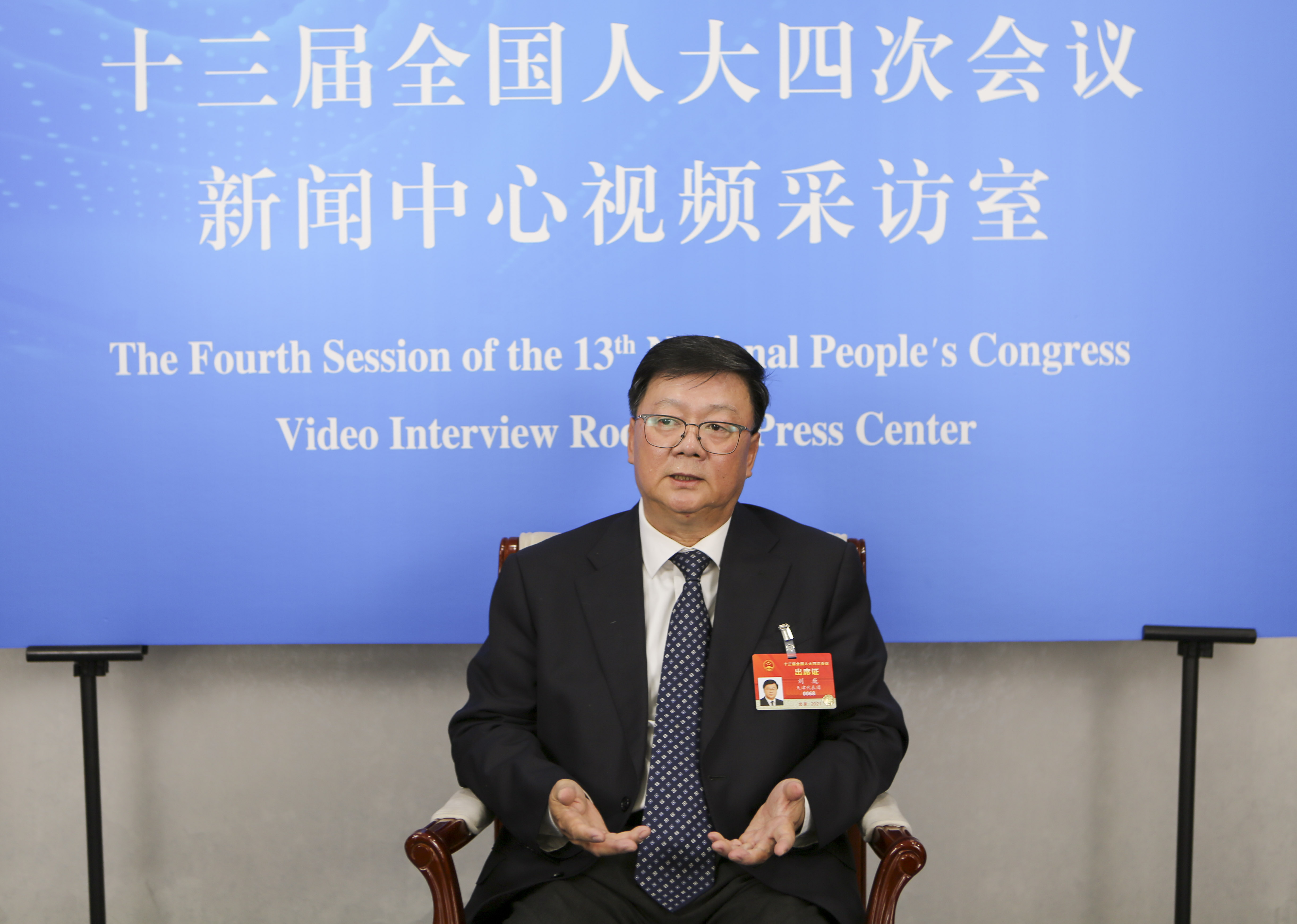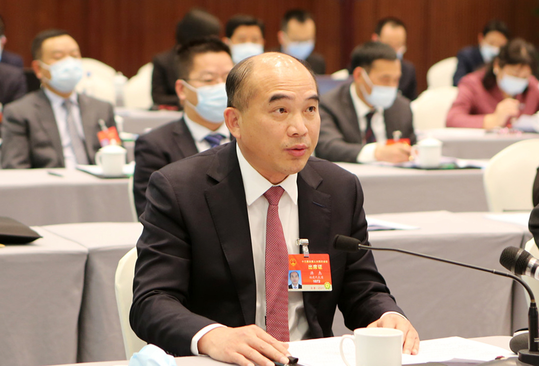 3月6日,全国人大代表、中国核工业集团有限公司战略与管理咨询委员会委员刘巍接受采访。新华社记者 吴雨 摄
