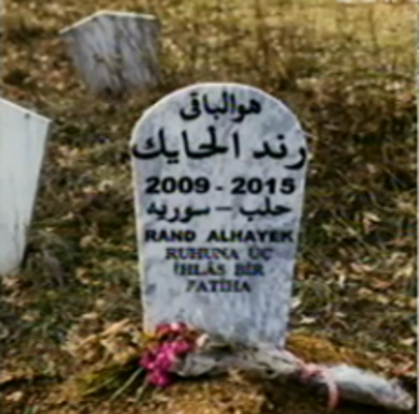 ▲这是6岁的叙利亚小女孩兰德的墓碑,她和家人从叙利亚逃出来,经土耳其抵达希腊。她逃难中在希腊被火车撞倒身亡。