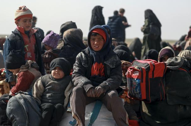 △2019年1月,叙利亚东南部巴古兹一个村庄的村民逃离家园,前往200英里外的一个流离失所者营地
