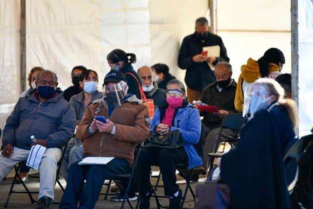 3月9日,墨西哥伊达尔戈州阿卡克索奇特兰的居民在一处新冠疫苗接种点外等待。