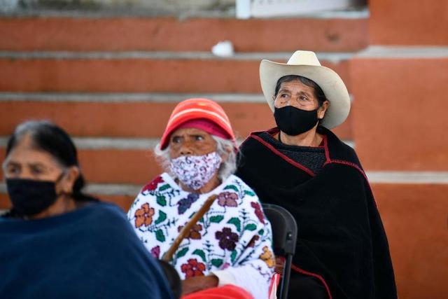 3月9日,墨西哥伊达尔戈州阿卡克索奇特兰的居民在一处新冠疫苗接种点接种疫苗。