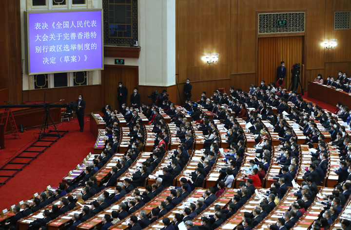 3月11日,经十三届全国人大四次会议表决,《全国人民代表大会关于完善香港特别行政区选举制度的决定》高票通过。这是继制定实施香港国安法后,中央完善香港法律和政治体制的又一重大举措。决定的通过,为堵塞香港现行选举制度漏洞,从制度机制上全面贯彻落实“爱国者治港”原则,确保中央对香港的全面管治权,确保香港长期繁荣稳定和“一国两制”实践行稳致远,提供了坚实有力的宪制保障。