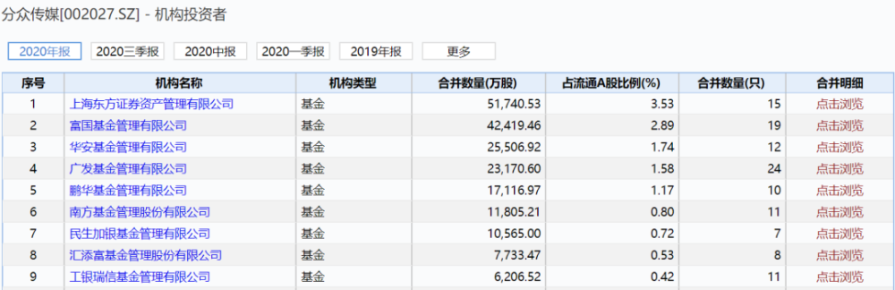Wind数据显示,去年二季度开始,机构大举加仓分众传媒,去年三季度71家机构持股20.1亿股,去年四季度69家机构持股量升至24.05亿股。